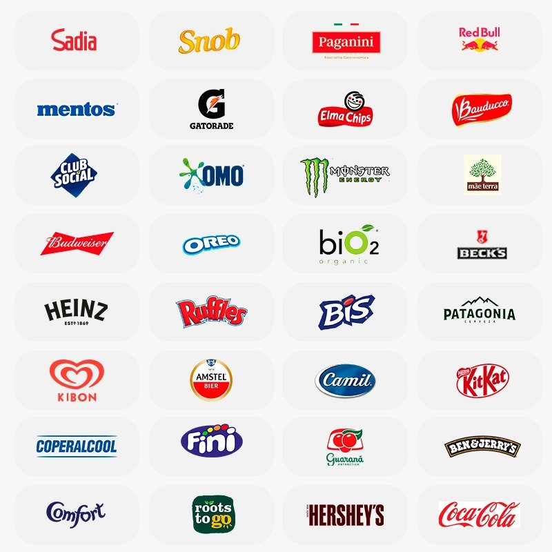 Temos uma ampla variedade de marcas de alimentos, bebidas e de itens essenciais disponíveis no estoque para venda.